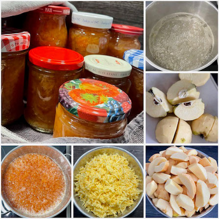 In der Zwischenzeit die Quitten schälen, entkernen und raspeln.